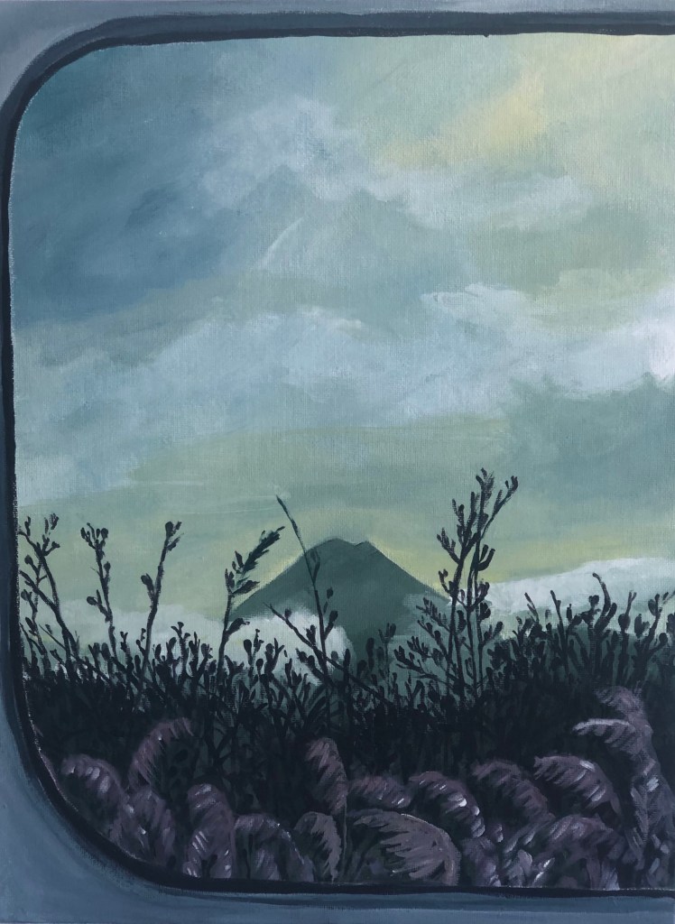 We set off and as I gaze out the bus window, I catch my first glimpse of the mountain this morning. It is Ngauruhoe, still partly shrouded in mist, and partially hidden by flowering native flax and toi toi, that line the road on this high plain, like a sneaky date – he wants to check you out before you see him. It is the first of the triumvirate to show itself, three male mountains in Maori tradition, Ruapehu is the highest, the alpha. The other two are Tongariro and his son Ngauruhoe. Today we are heading to the Tongariro Alpine crossing, one of the most ‘walked walks’ in New Zealand, but certainly not a packaged tourist ramble.